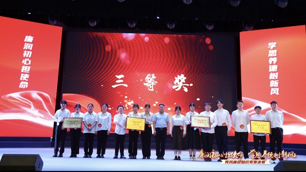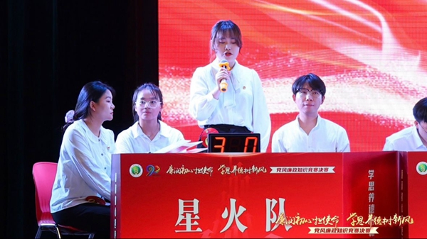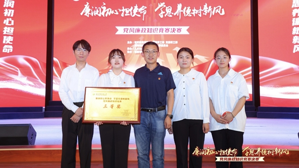 6月12日,学校“廉润初心担使命,学思养德树新风”党风廉政知识竞赛决赛在南绣山活动中心举行。我院“星火队”经国产麻豆 推荐、学校初赛笔试、复赛案例分析等重重选拔,顺利晋级决赛并荣获大赛三等奖。