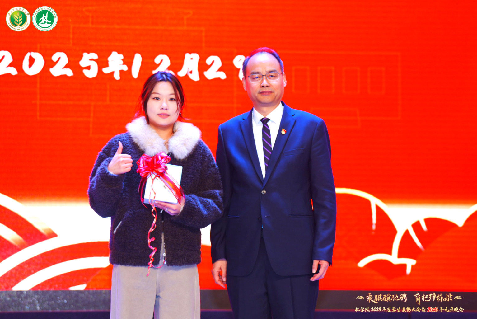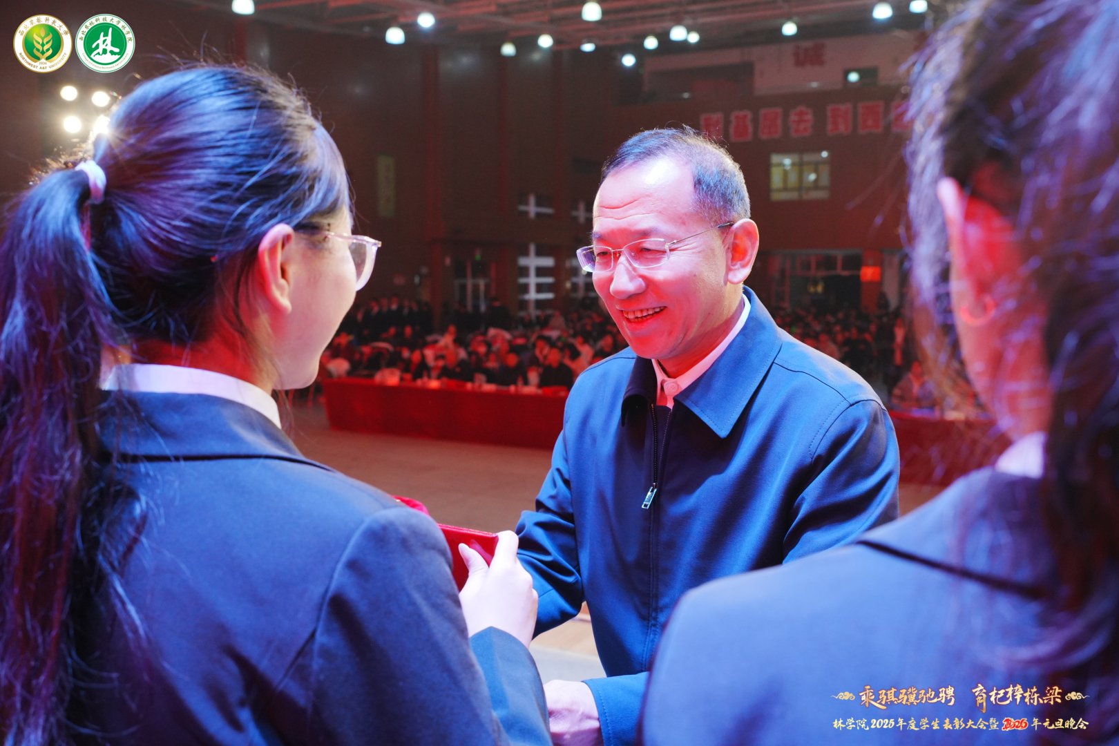 院长王利兵为“百名校园之星”“少数民族优秀国产麻豆 ”获奖国产麻豆 代表颁奖